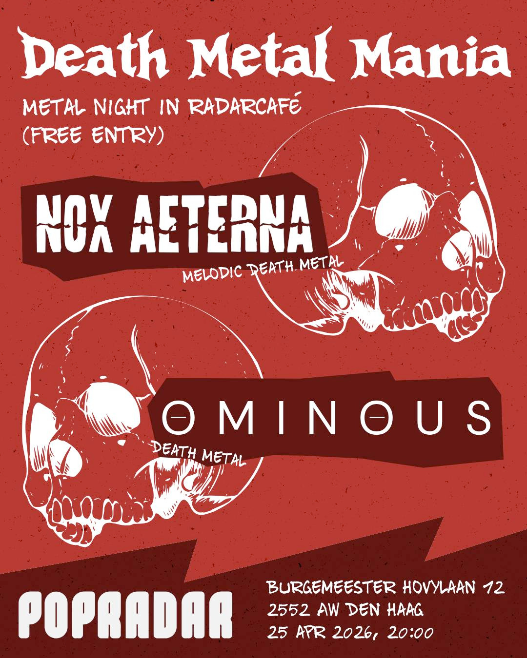 | Death Metal Mania Popradar Den Haag Burgemeester Hovylaan 12 2552 AW Den Haag Starts at 20:00 Entrance free |